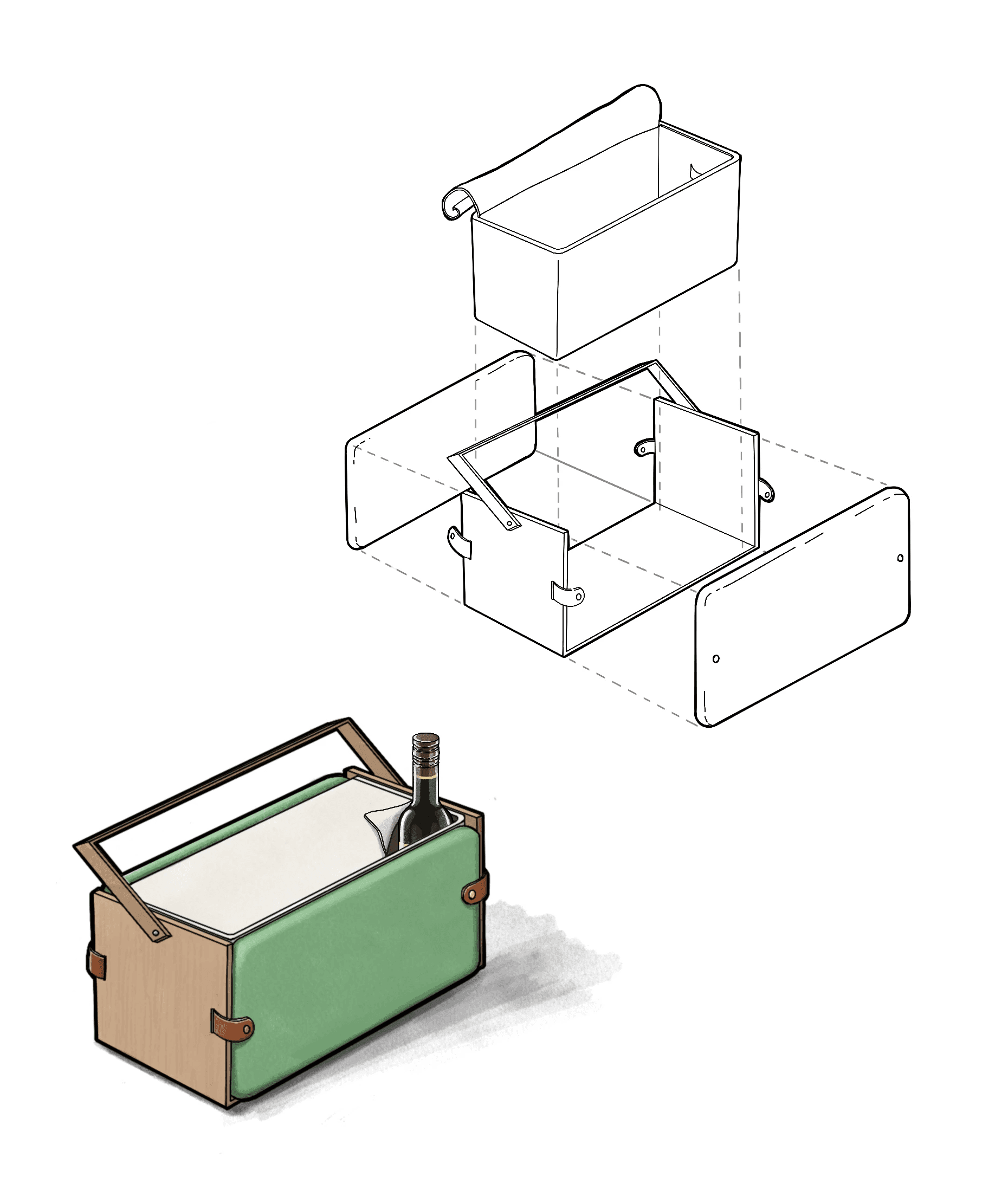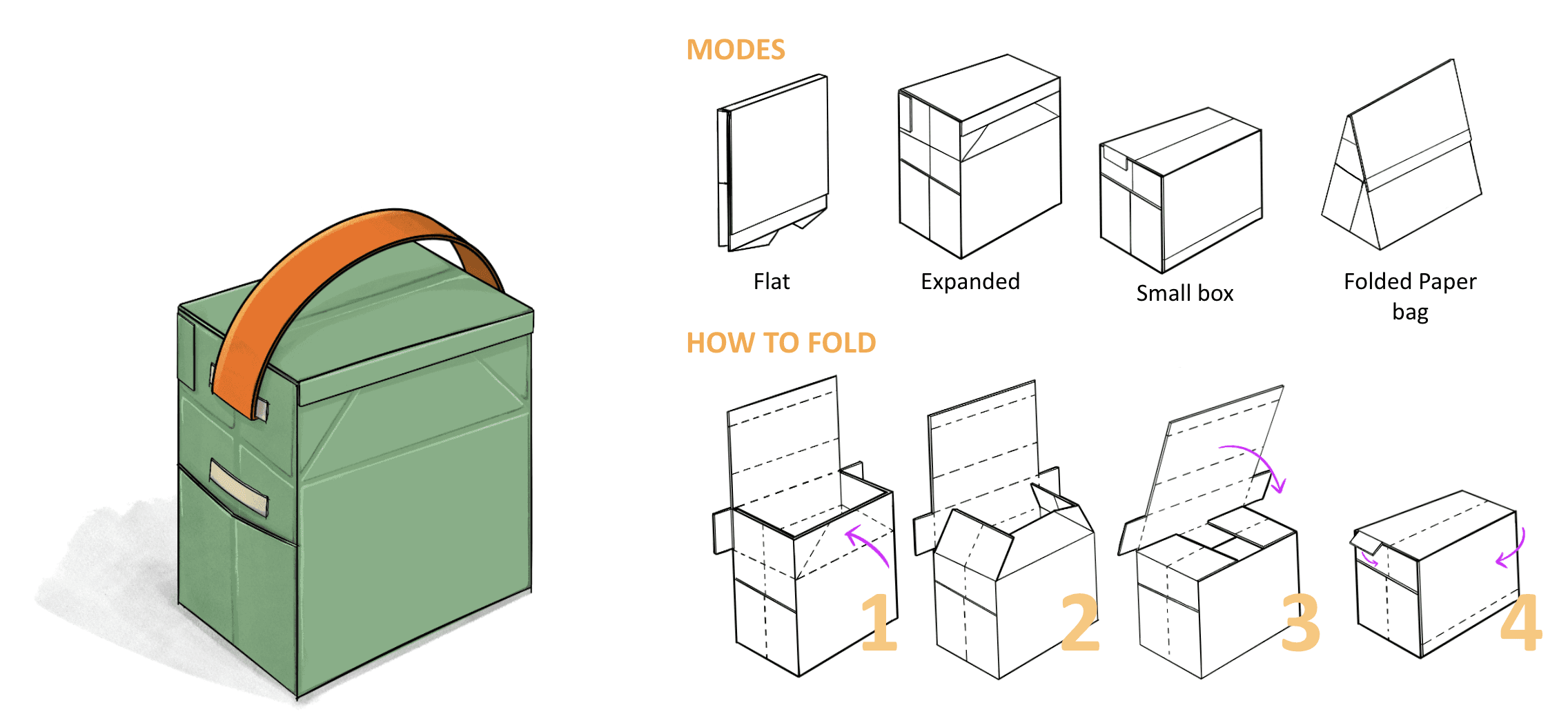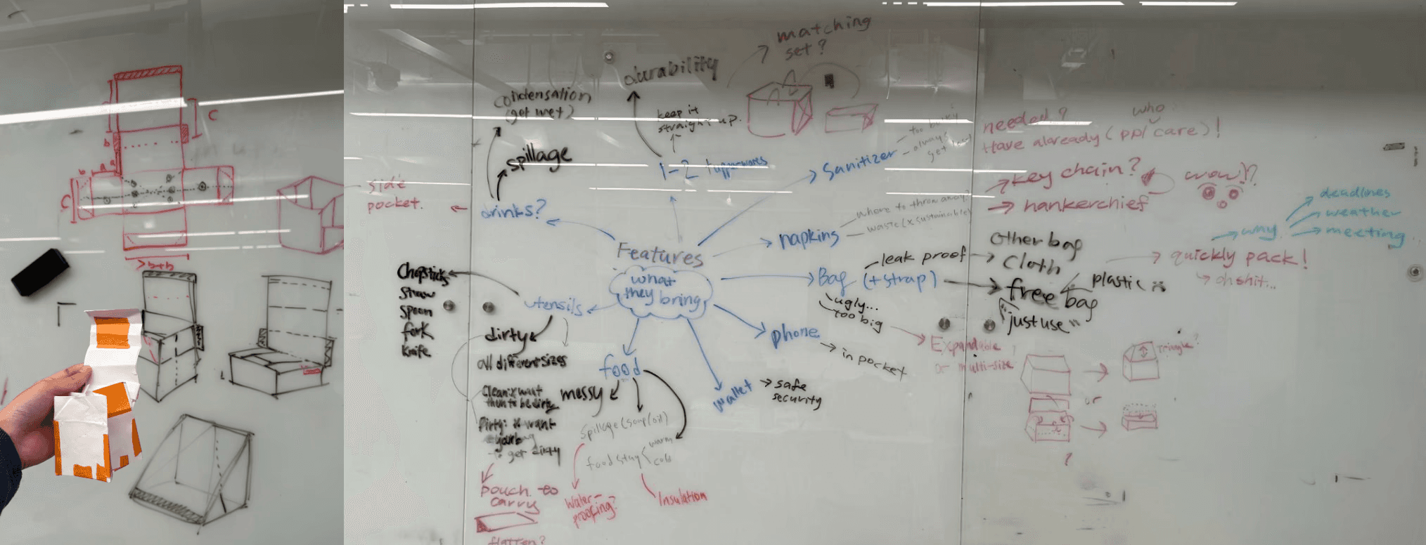 One early concept was a foldable lunch tote that transformed into a portable tray, combining storage and surface in a lightweight form.