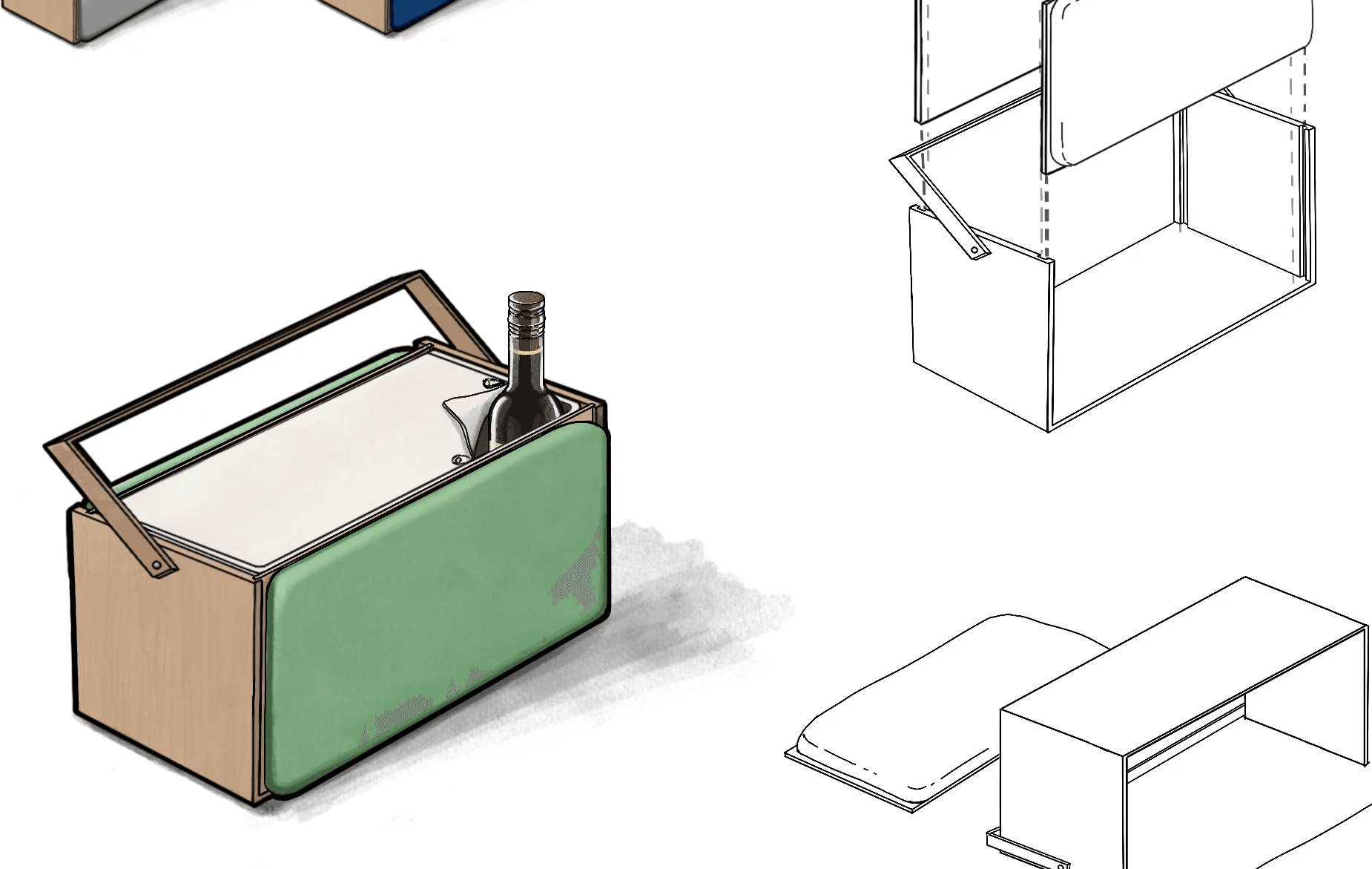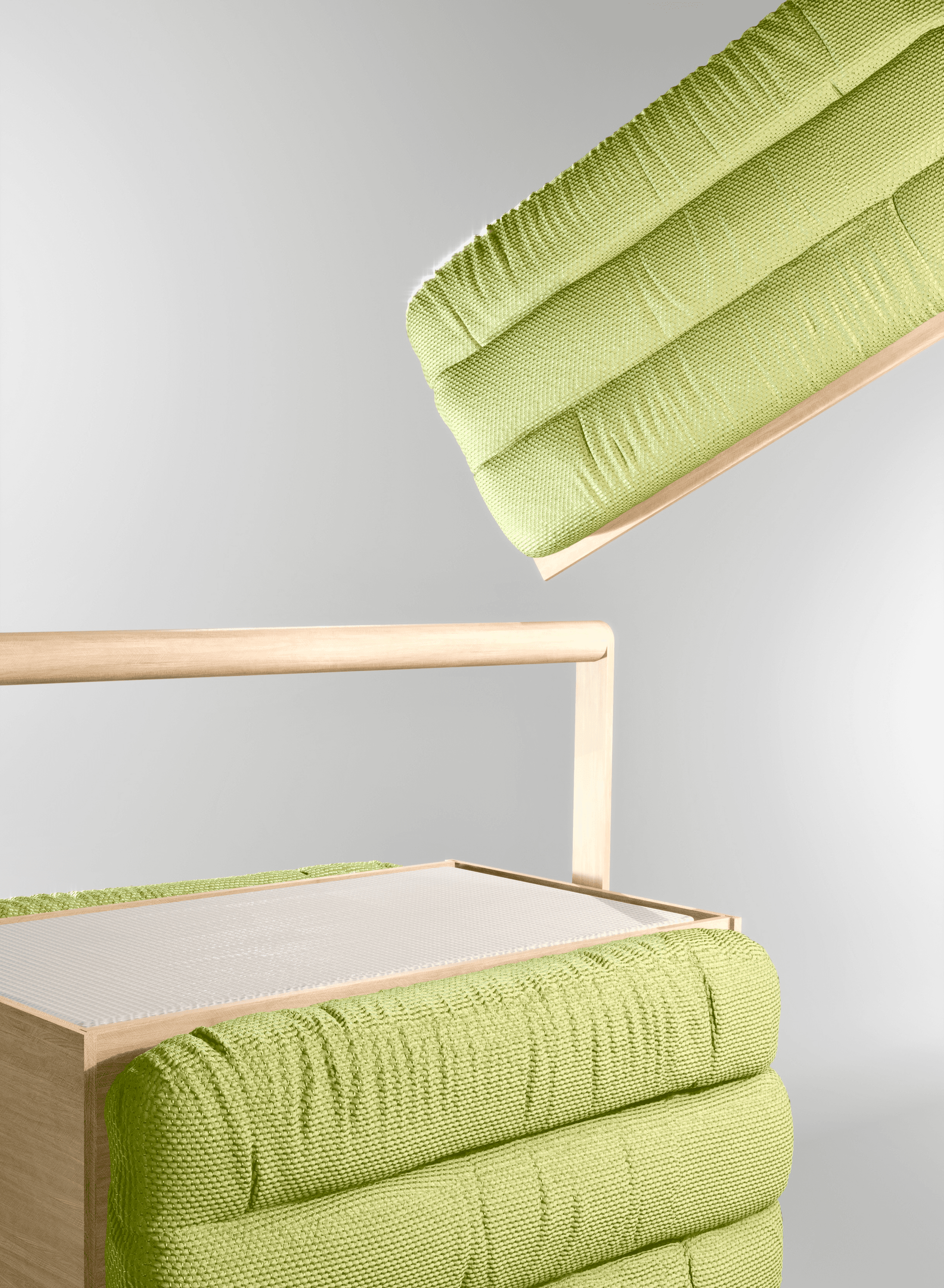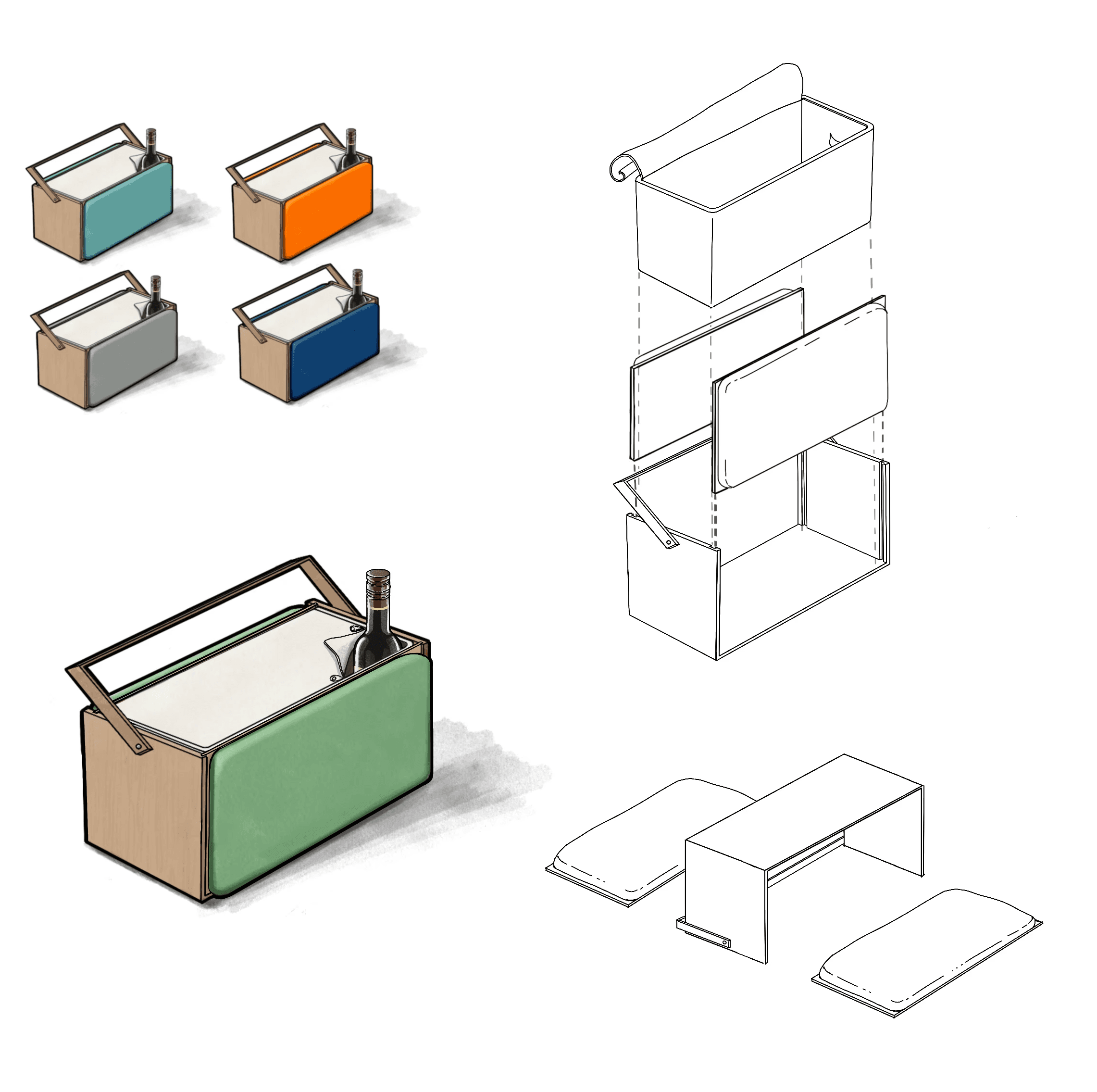 From wood fabrication to sewing and cushion experimentation, prototypes tested structure, handles, material durability, and comfort layering. Iterations refined assembly logic and stability.