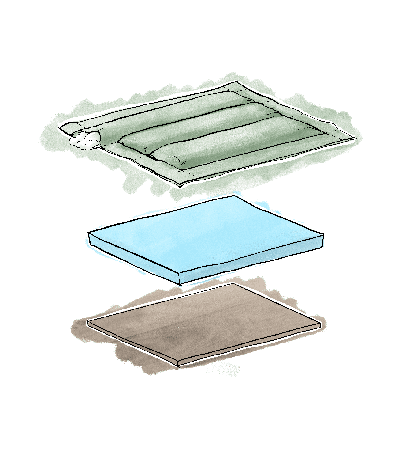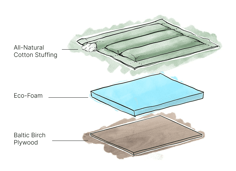 The cushion integrates a layered structure that compensates for uneven ground while maintaining visual continuity with the wooden base.