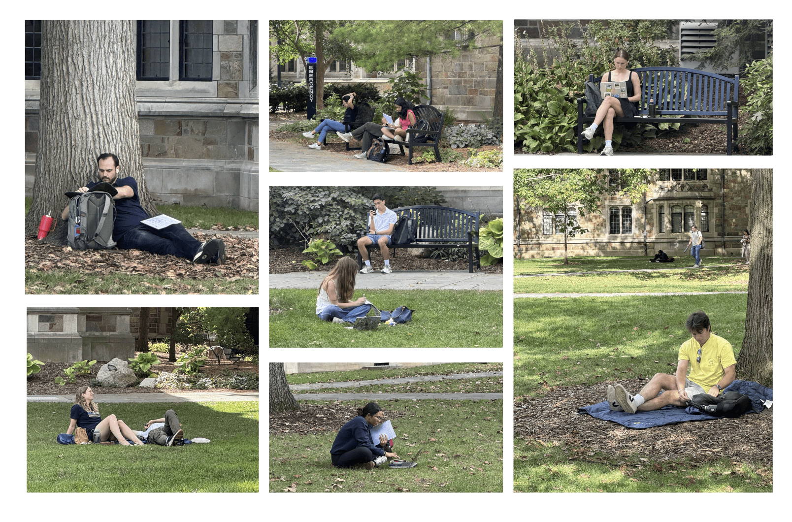 We observed how people use outdoor spaces and conducted interviews to understand behavior patterns. Many worked, studied, or ate outside, yet their setups were improvised and fragmented.