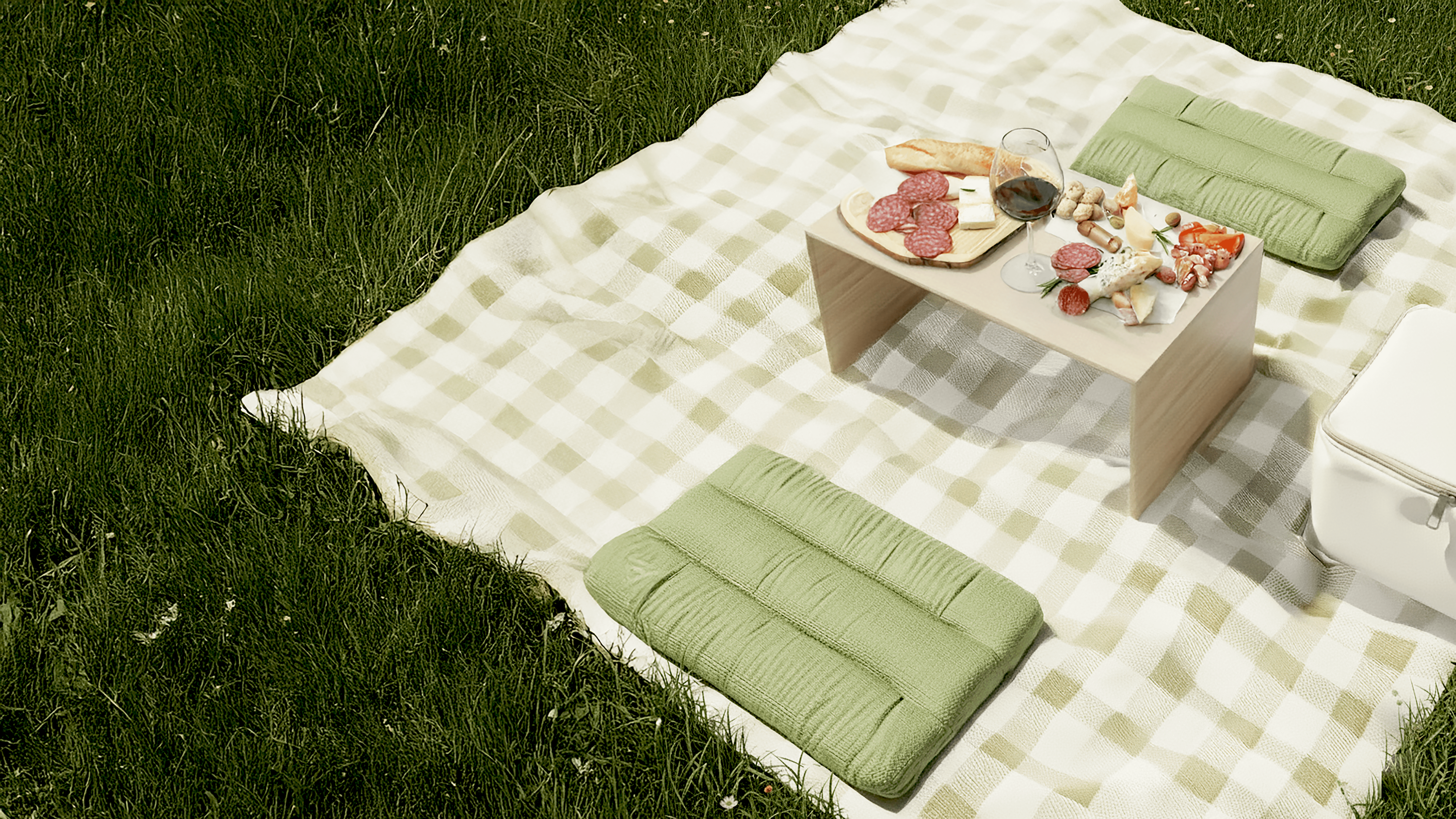Designed for shared meals outdoors, it integrates seating, surface, and storage into a single modular system that replaces disposable picnic setups with a durable, reusable alternative.