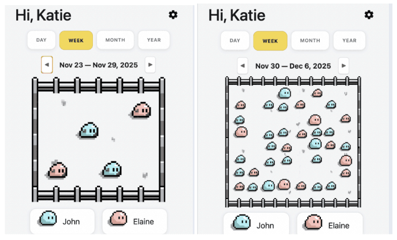 A parent-facing dashboard summarizes hygiene activity across users. Wash frequency, duration quality, and state distribution can be filtered by day, week, month, or year. Individual user views allow caregivers to interpret behavioral patterns without interrupting the child’s experience.