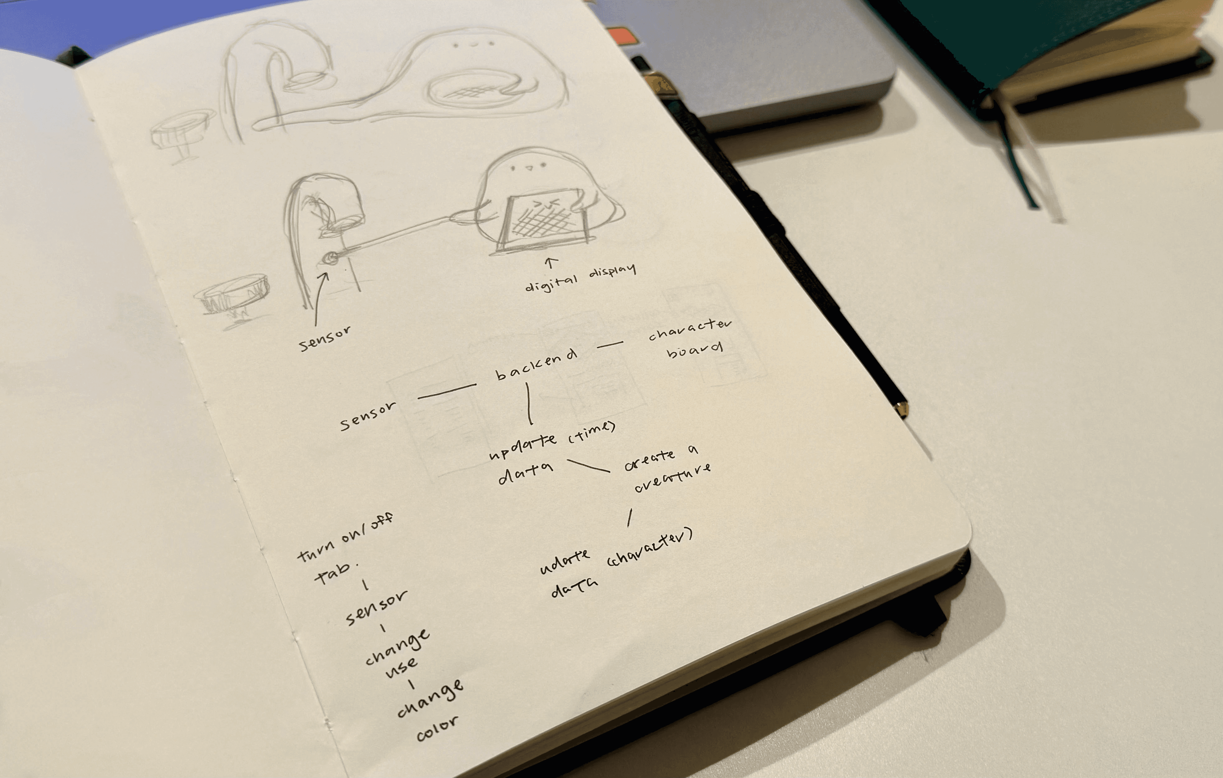 Slime Farm is a connected physical–digital system where a faucet-mounted slime character responds to handwashing in real time.